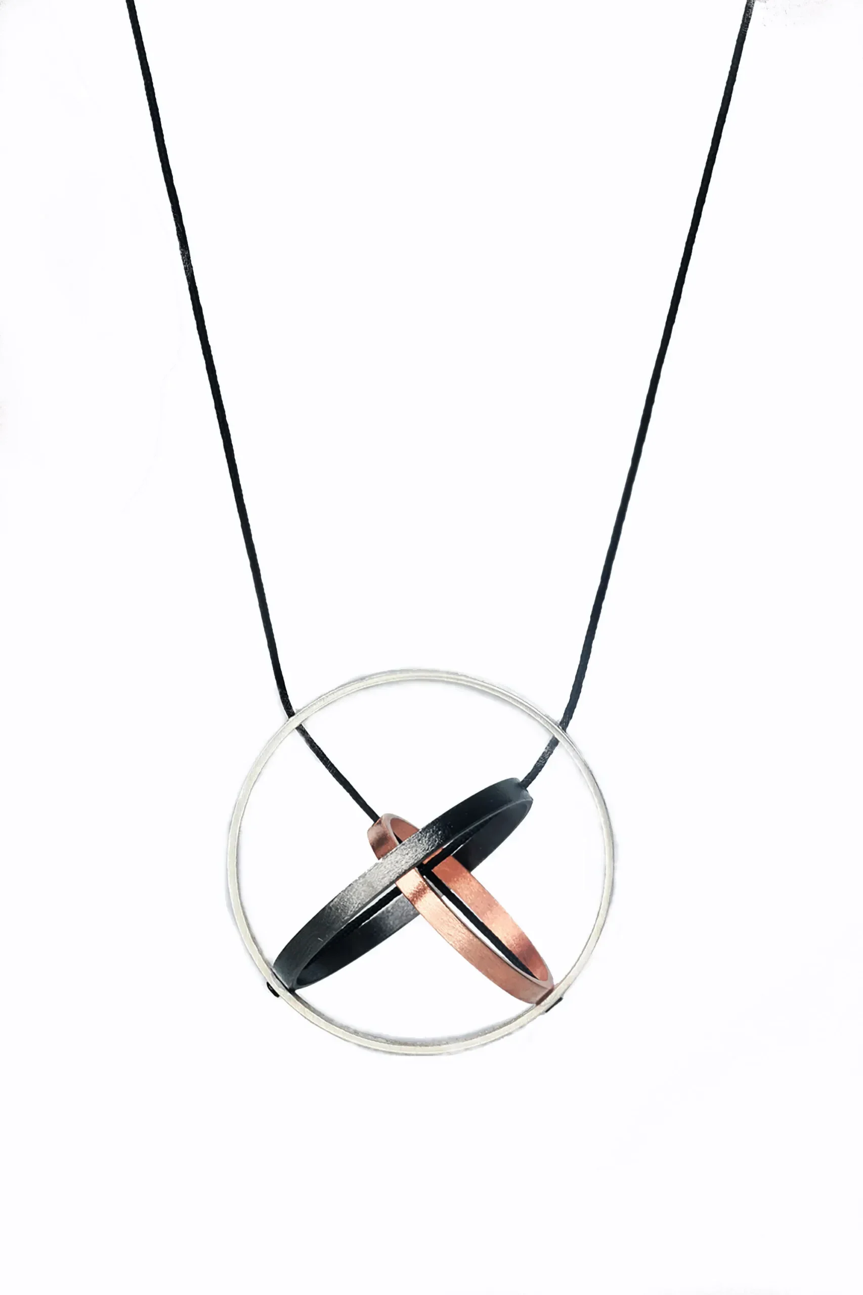 Μίνιμαλ γεωμετρικό κολιέ από ορείχαλκο με χρώματα επιμεταλλώσεων