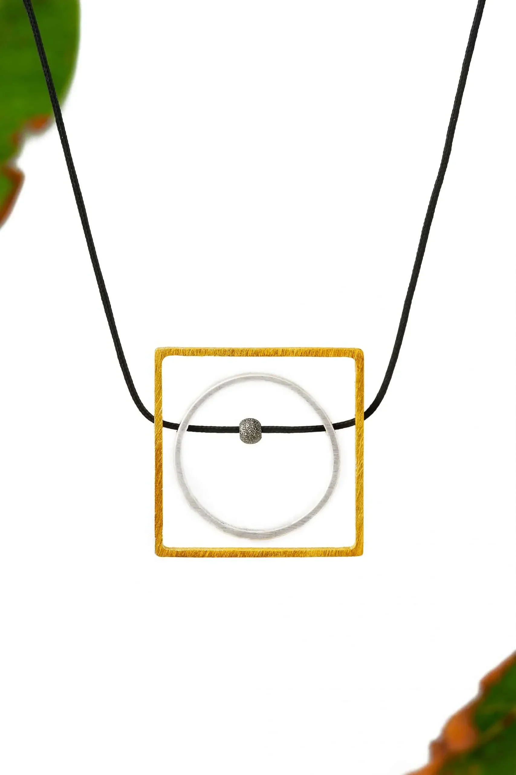 Μίνιμαλ γεωμετρικό κολιέ από ορείχαλκο με χρώματα επιμεταλλώσεων