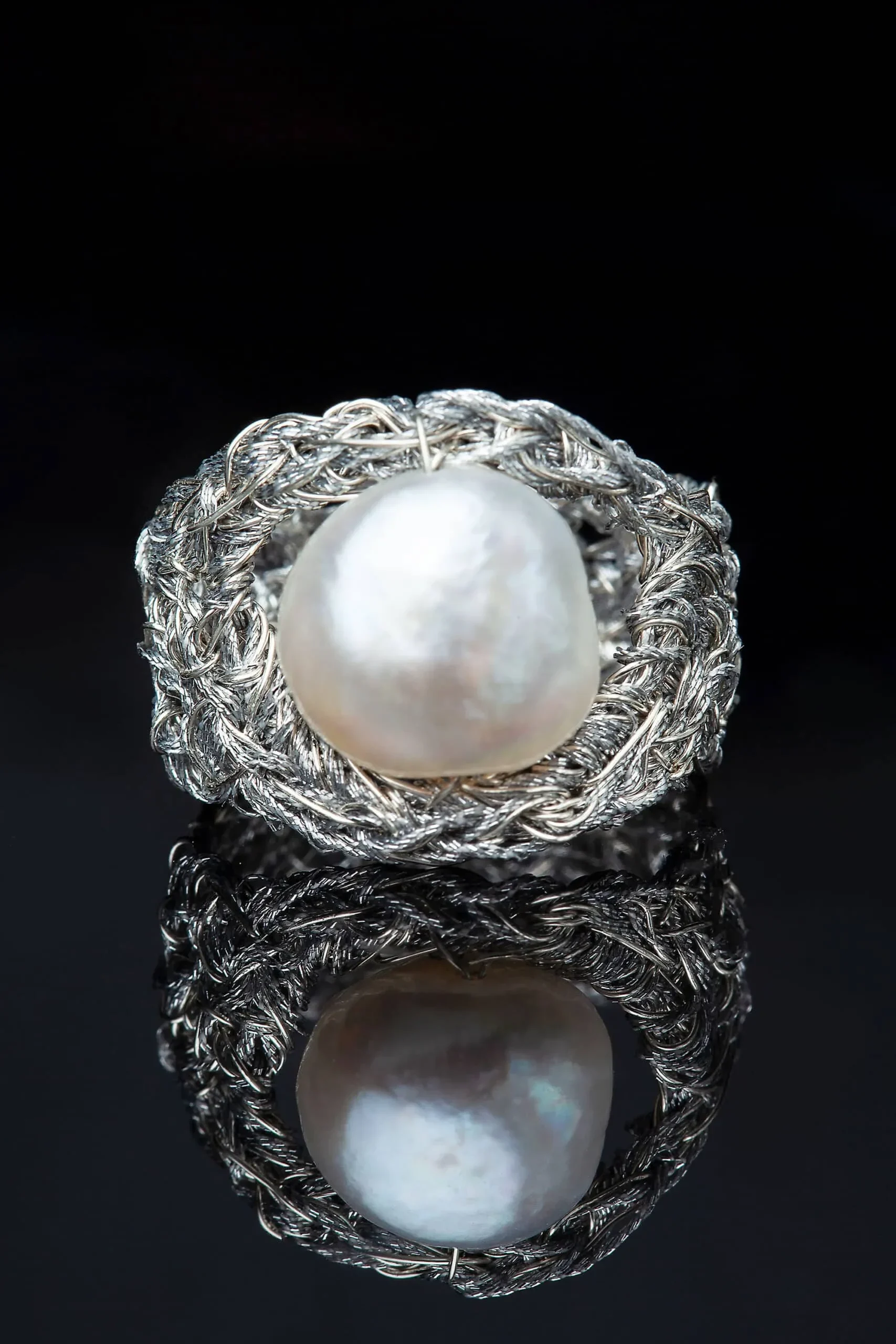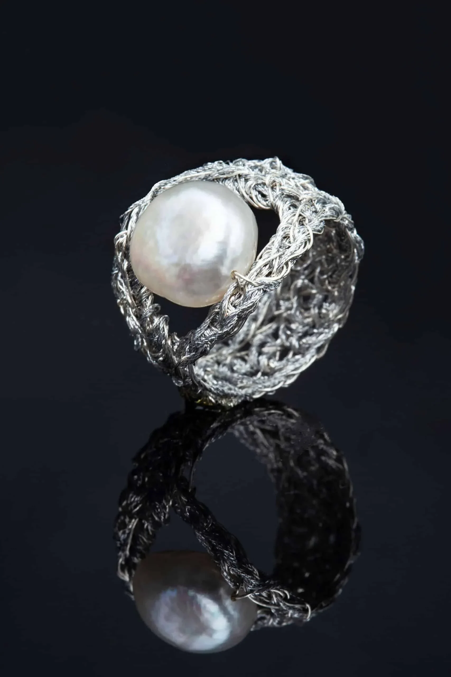 Πλεκτό ασημένιο δαχτυλίδι με μαργαριτάρι