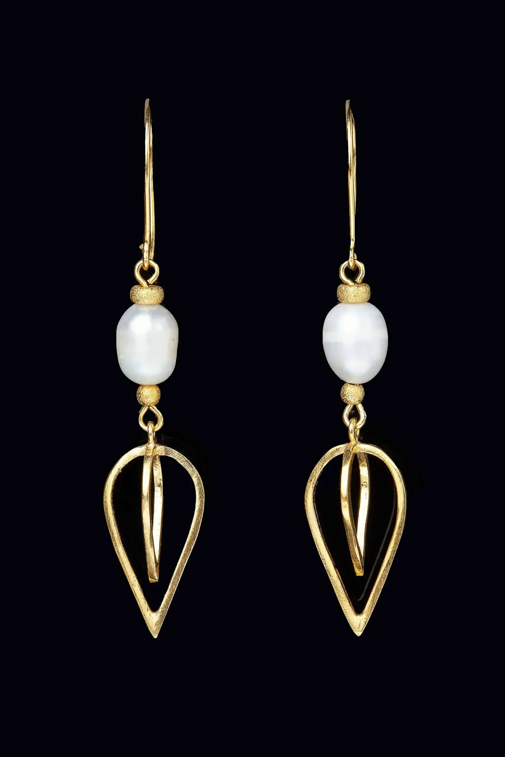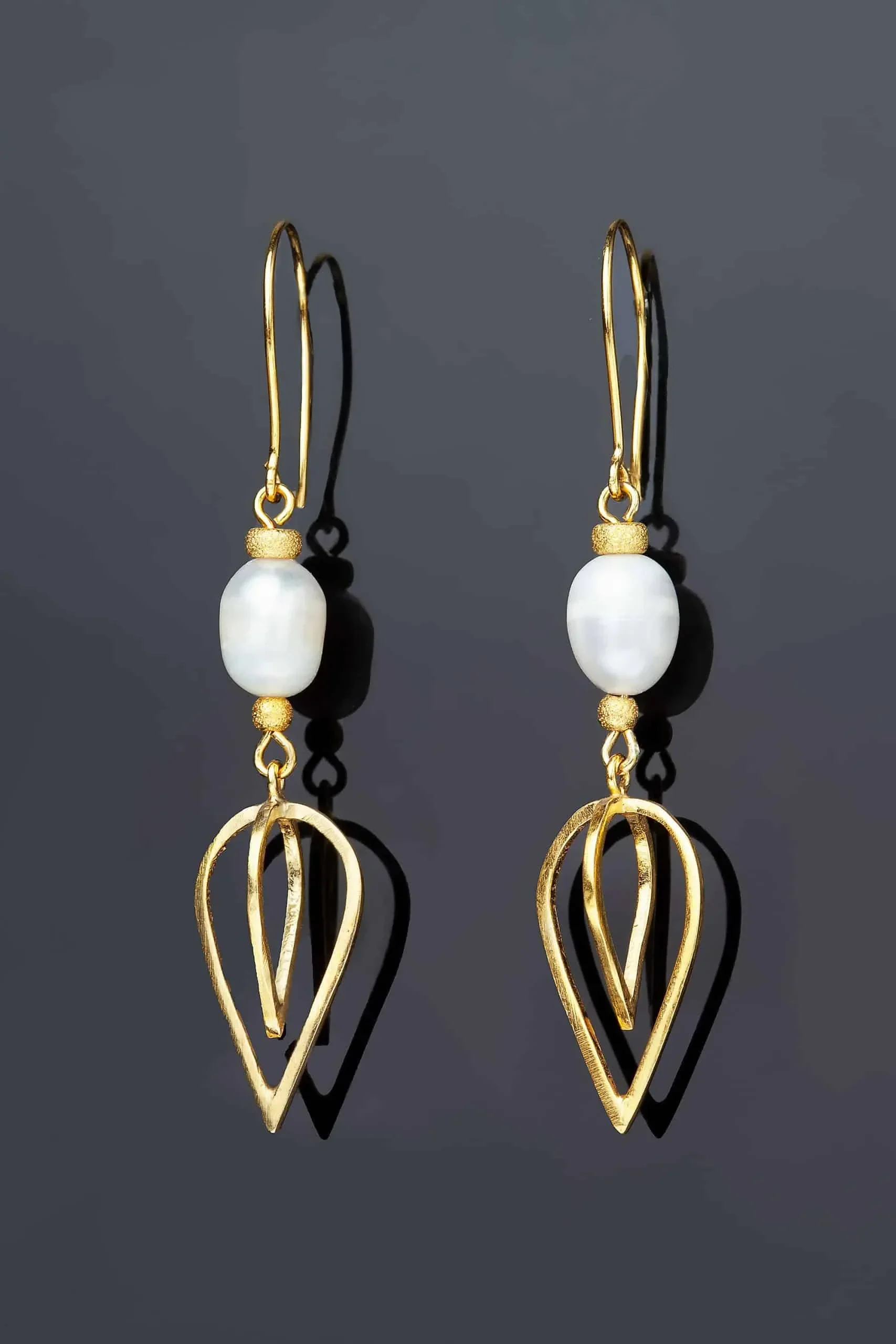 Σταγόνες ασημένια επίχρυσα σκουλαρίκια με μαργαριτάρια