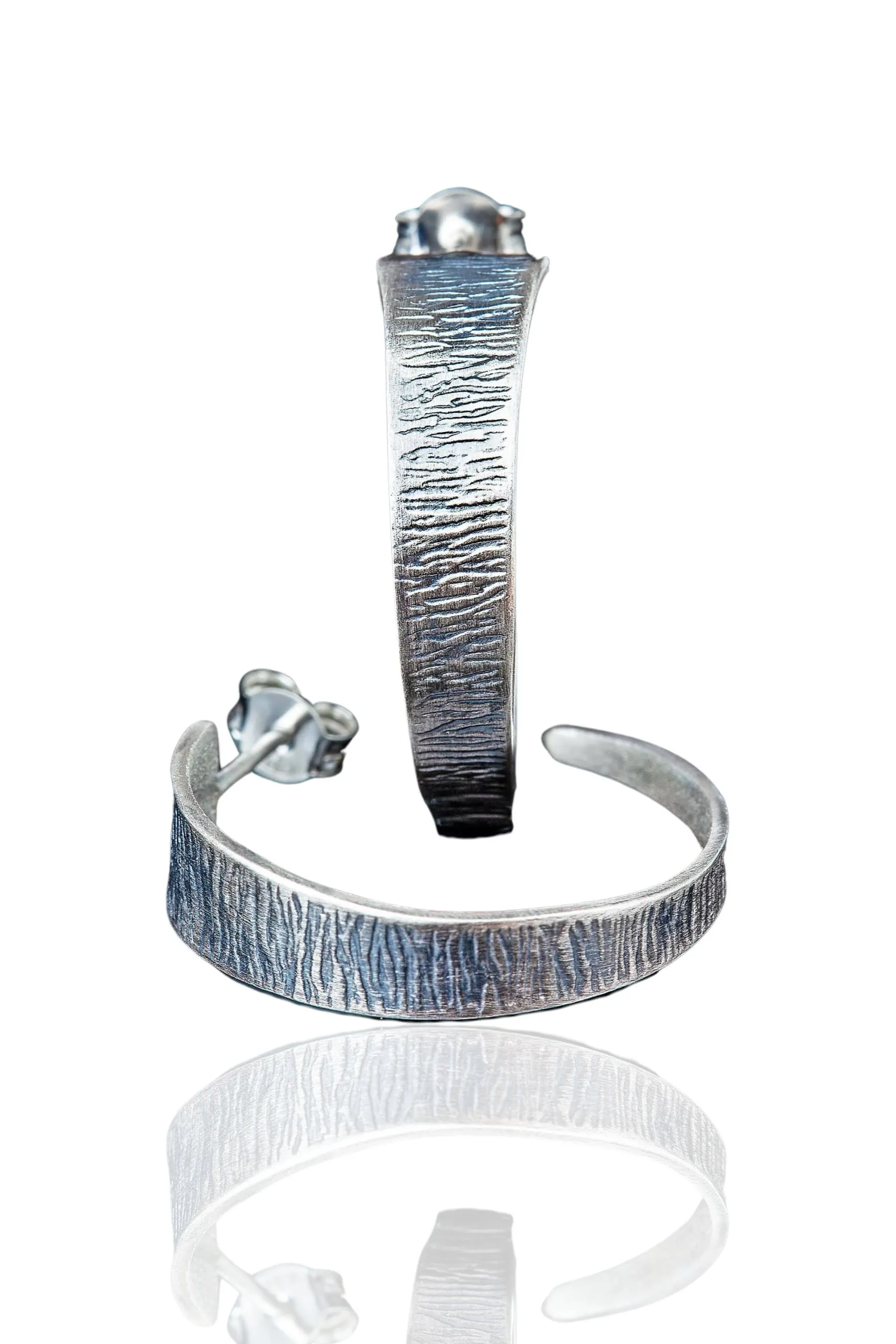 These stunning handmade silver hoops are the perfect way to add an elegant touch to any look. The unique texture adds a subtle sparkle to the classic hoop design, while the timeless look that will never go out of style. Whether you’re looking to add a classic flair to a bold outfit or just want a simple accessory to dress up a more casual look, these textured handmade silver hoops are the perfect choice.