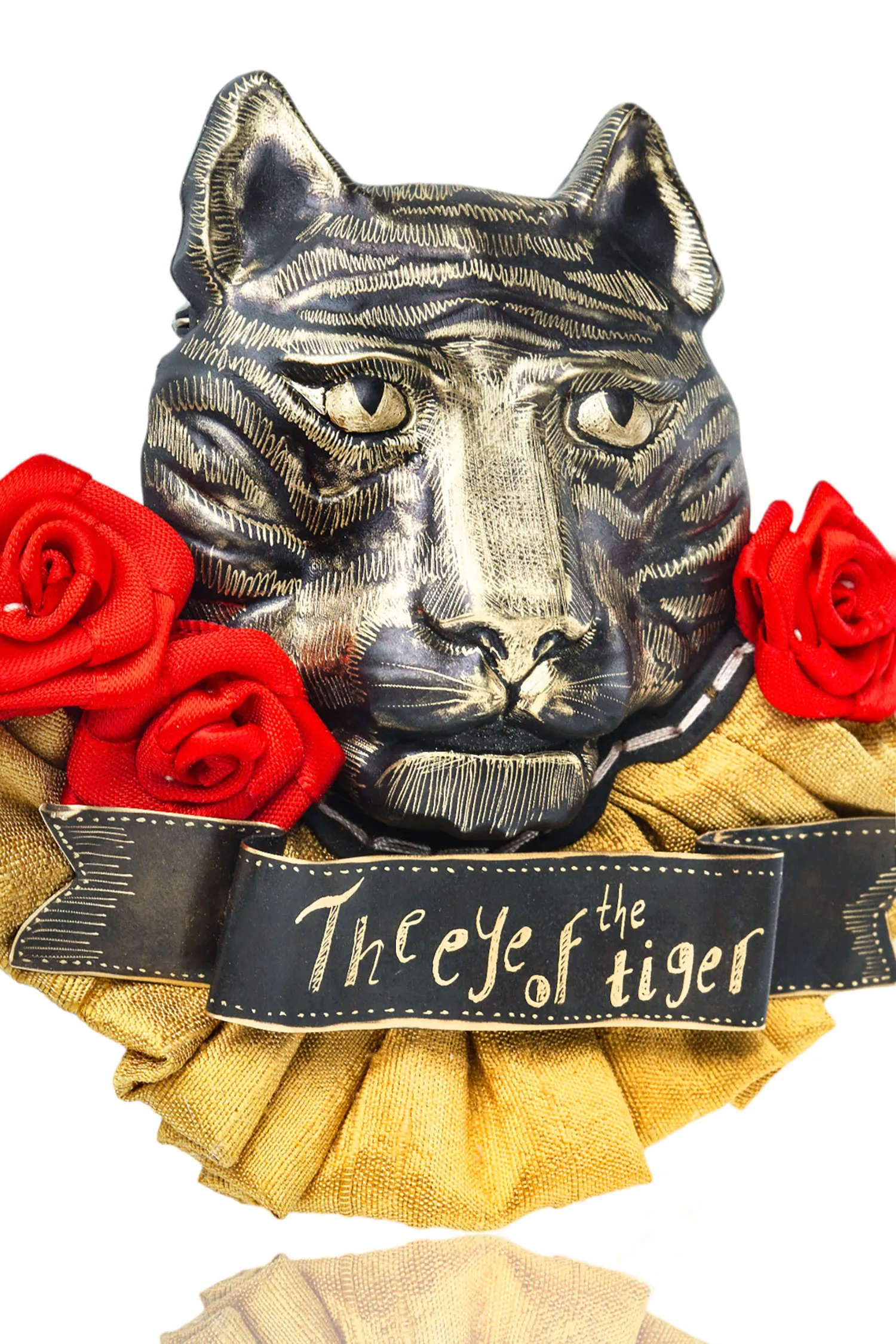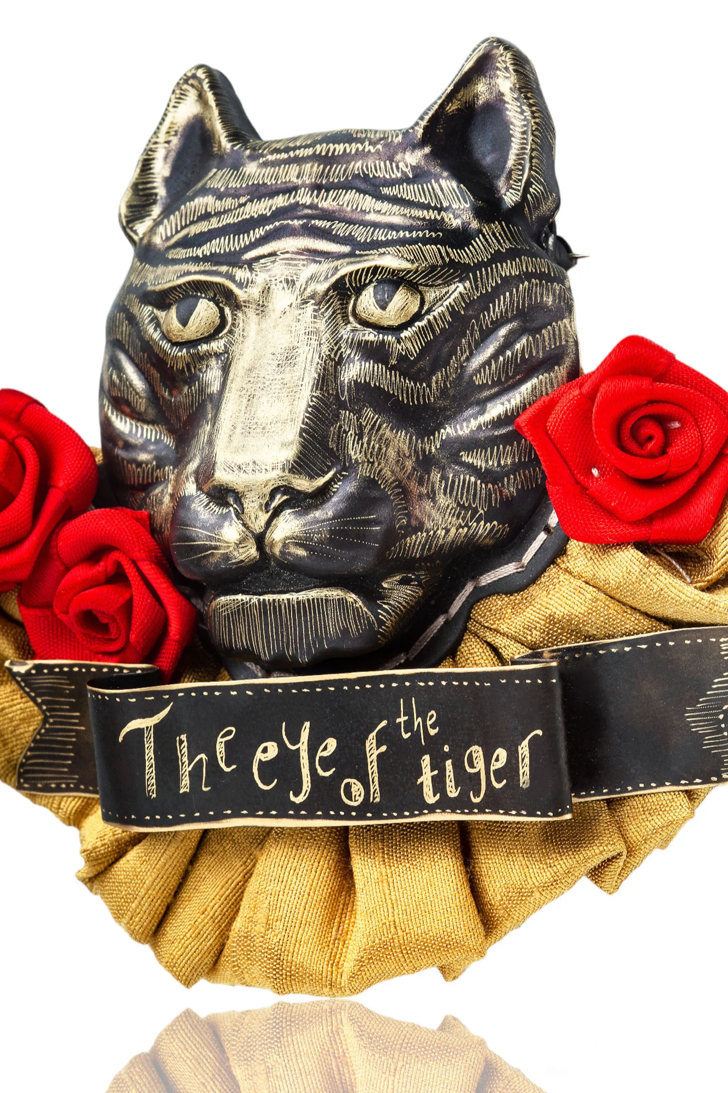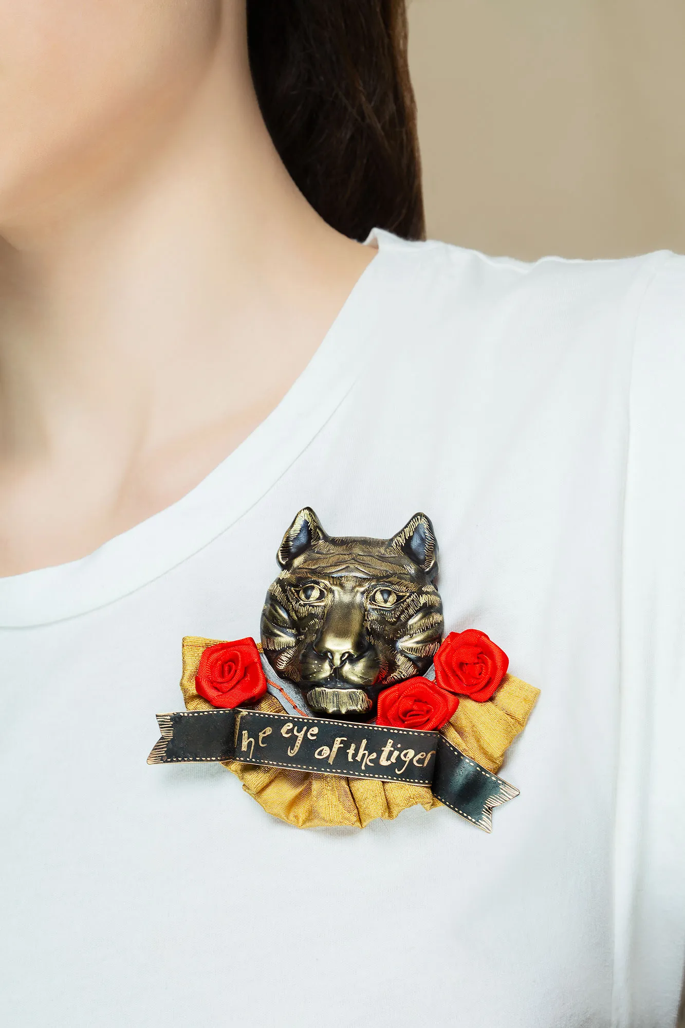 Introducing our stunning Tiger engraved handmade brooch, featuring the iconic “Eye of the Tiger” design. Crafted with intricate detail, this brooch combines the strength and grace of the majestic tiger with the softness of silk fabrics. Perfect for adding a touch of wild elegance to any outfit. Limited edition, get yours now!