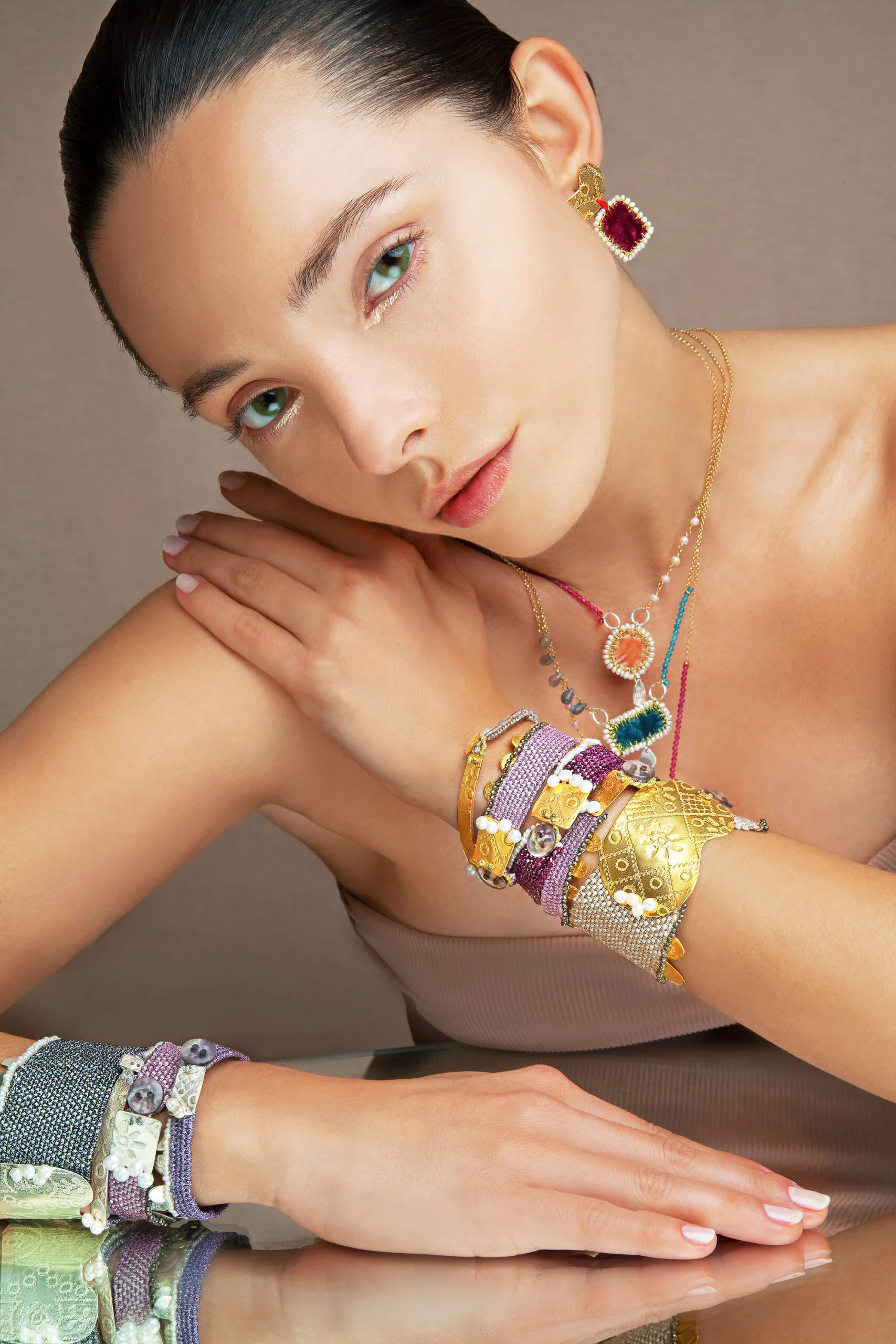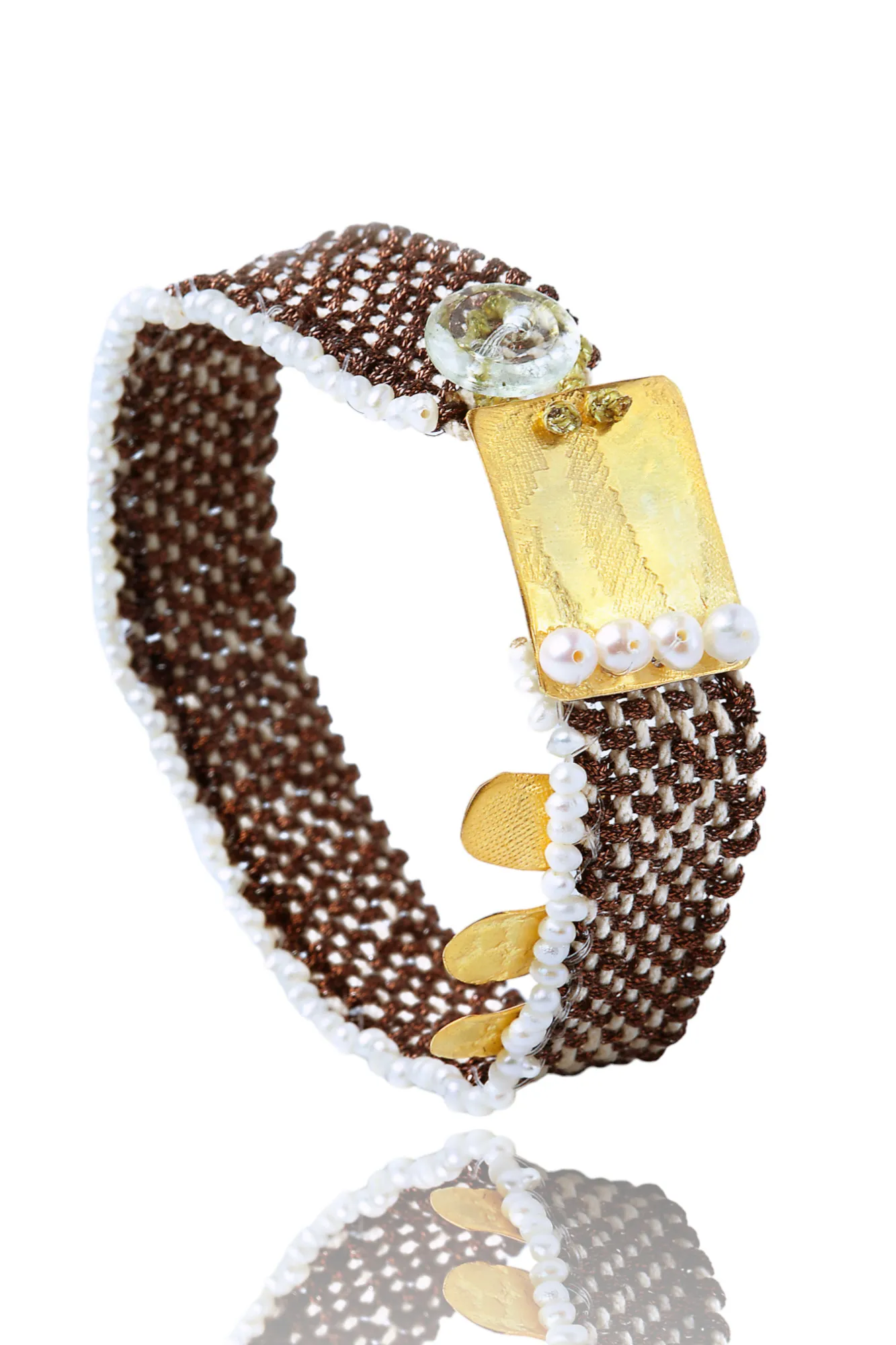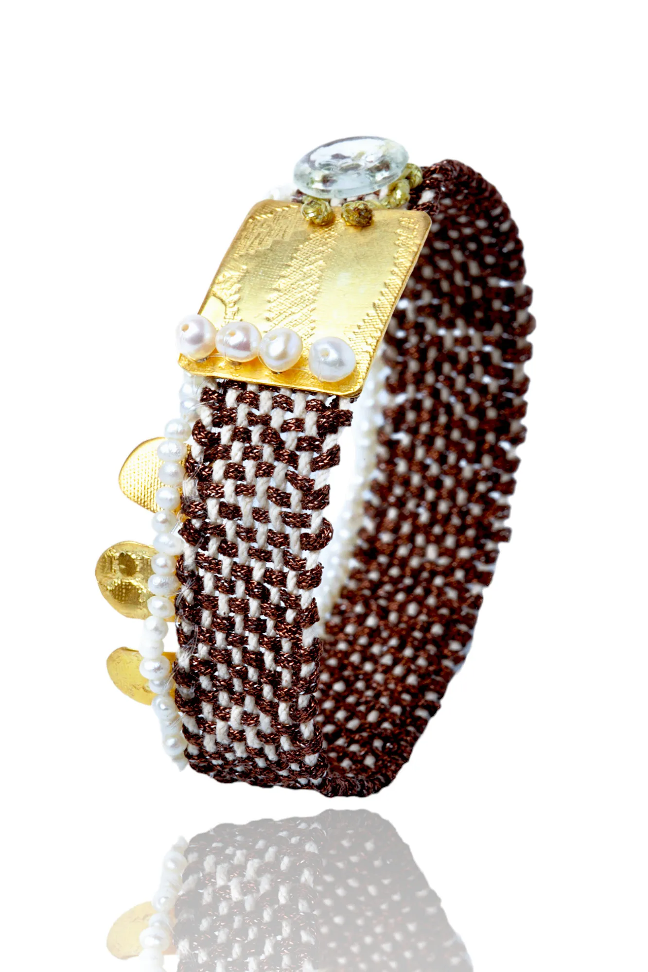 Υφαντό βραχιόλι με μαργαριτάρια και επιχρυσωμένο ασήμι